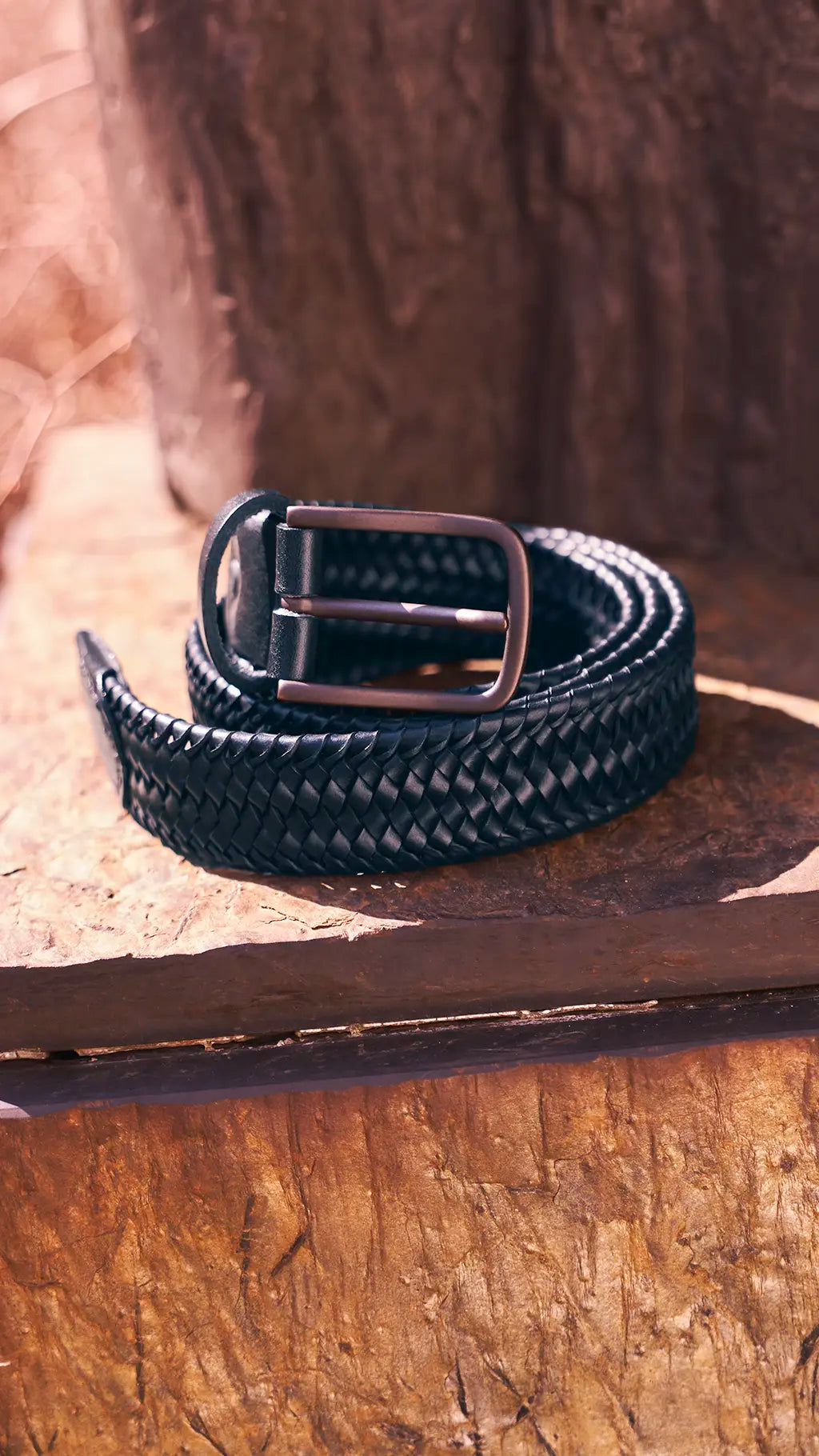Our fashionable woven belt is the perfect choice for those who prefer a sportier look. Made from high-quality stretch filaments that keep their shape, the buckle pin can be guided through the braided material at any point. This means your trousers will always fit perfectly with maximum freedom of movement. The leather appliqués are made from outstanding Italian leather.
