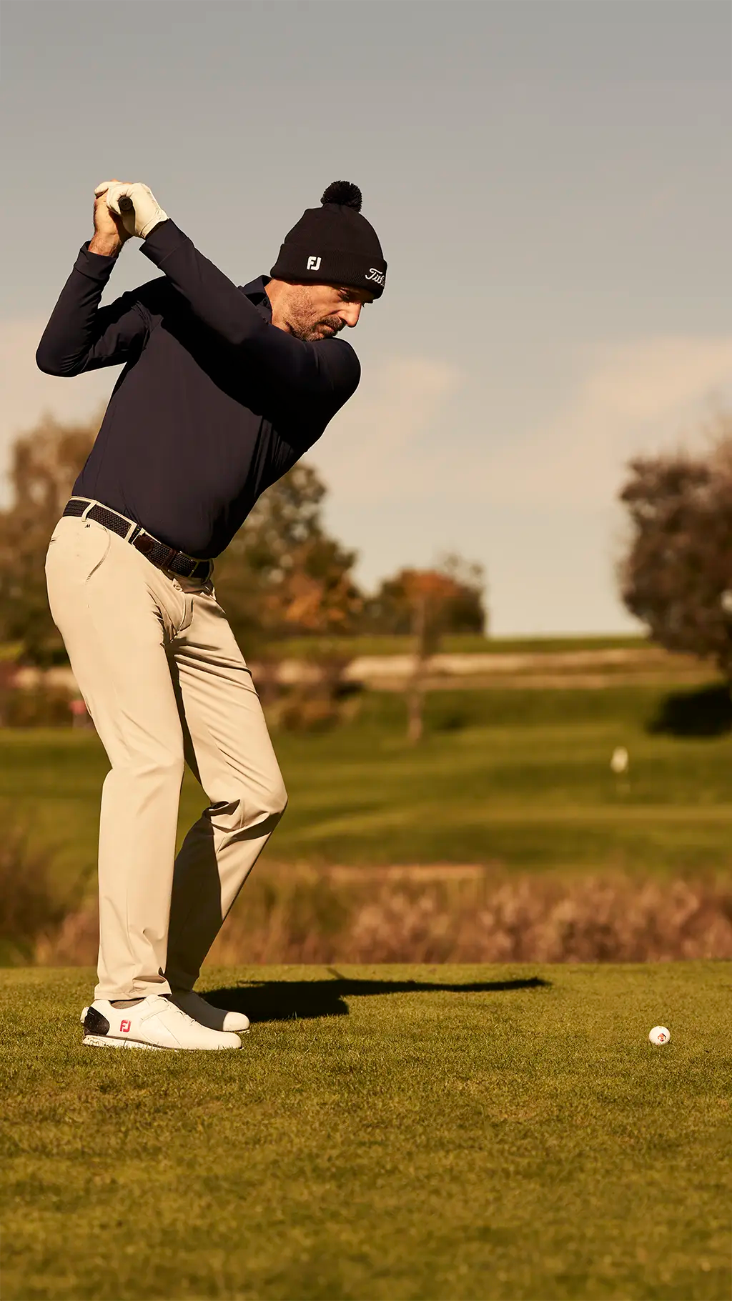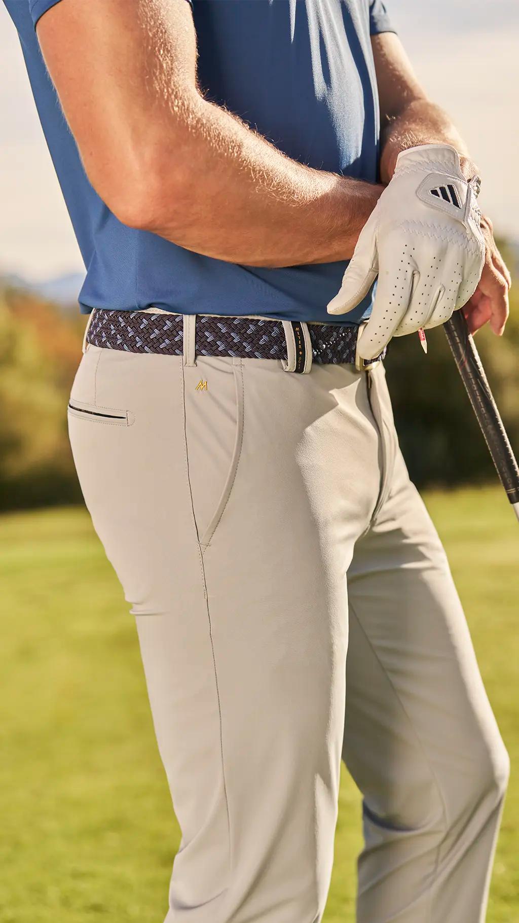 When it comes to our golf trousers, we exclusively use the innovative functional fabric REPREVE®, the world’s leading recycled fibre with outstanding properties. This breathable, thermo-regulating fibre helps maintain a consistent body temperature all year round. Our chinos are also super stretchy, flexible and shape-retentive, allowing you to perform at your best on the green. The water-resistant, quick-drying fabric provides extra comfort. These trousers feels wonderfully soft against the skin and are incredibly comfortable to wear!