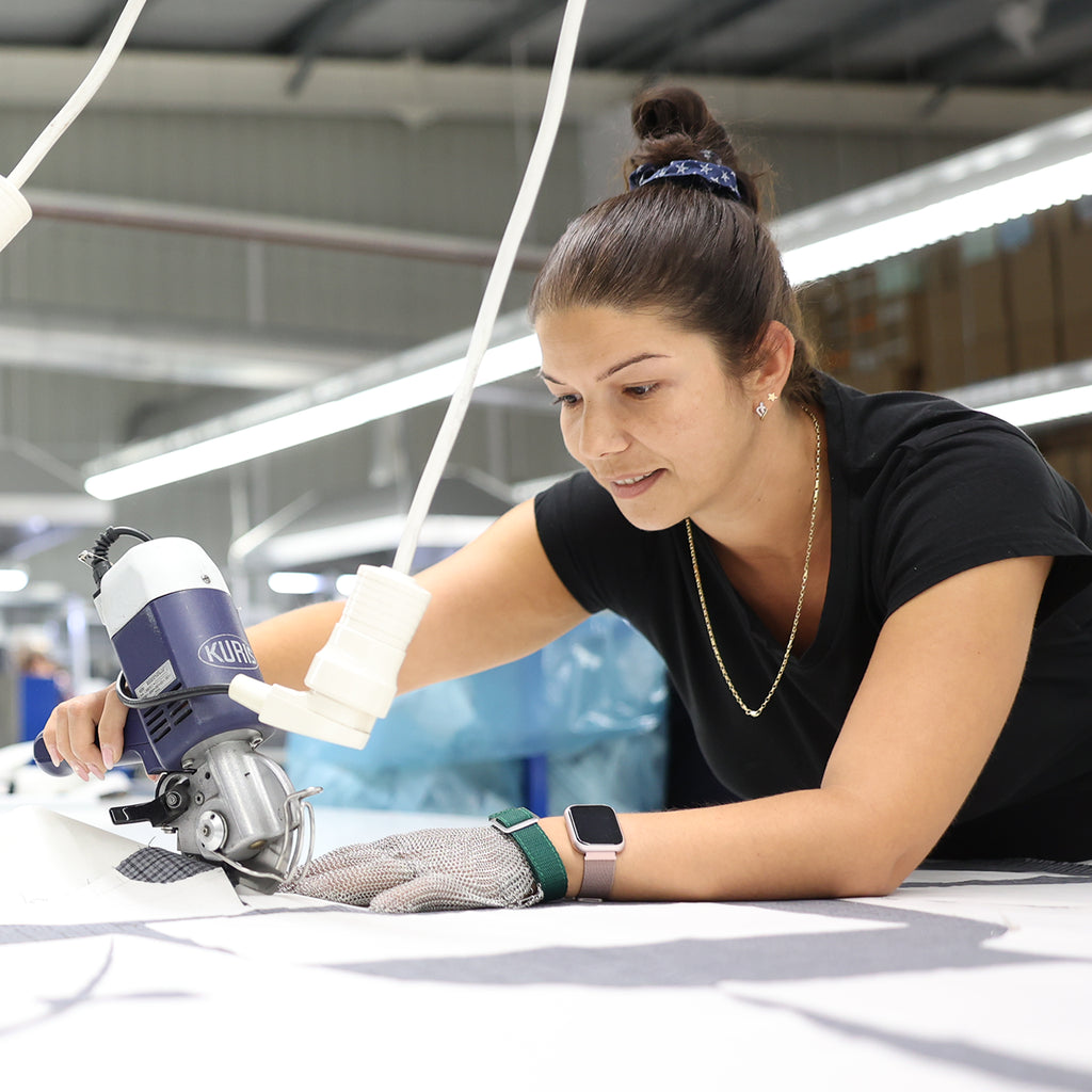 Our trousers are made at our own European production facilities. This allows us to observe the most up-to-date social and environmental standards and guarantees exceptional quality through regular inspections after each individual production step. Since the '90s, our production facilities have been located in the Romanian city of Târgu Secuiesc in Transylvania, a place that is home to a centuries-old tradition of craftsmanship. Outstanding machines from JUKI, Pfaff and Dürkopp Adler ensure optimum quality owing to the high seam quality. Furthermore, many of the production steps are done by hand – inspired by the art of bespoke tailoring. The sophisticated contour waistband, the turning over of the pocket lining and the decorative stitching on the seat pockets are examples of this. The loops for the belts and the buttons with a shank are also attached by hand.