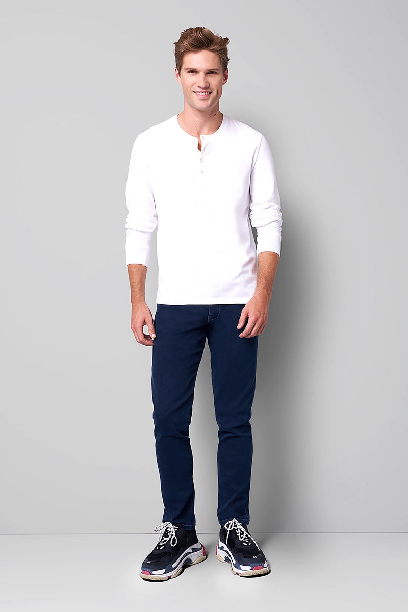 A flair for fashion meets conscious fashion – modern, hand-finished denims made of durable organic cotton with embroidered stitching are just as indispensable as our sporty five-pocket designs with a high-quality micro structure and comfortable super stretch fabric. Our Move design is a must for a dynamic lifestyle. Featuring an integrated stretch waistband at the side and wonderfully soft fabric, these trousers guarantee maximum freedom of movement and perfect style! Our M|5 chinos are a relaxed and understated choice for any occasion. All M|5 trousers are FAIR & sustainably made in Europe!