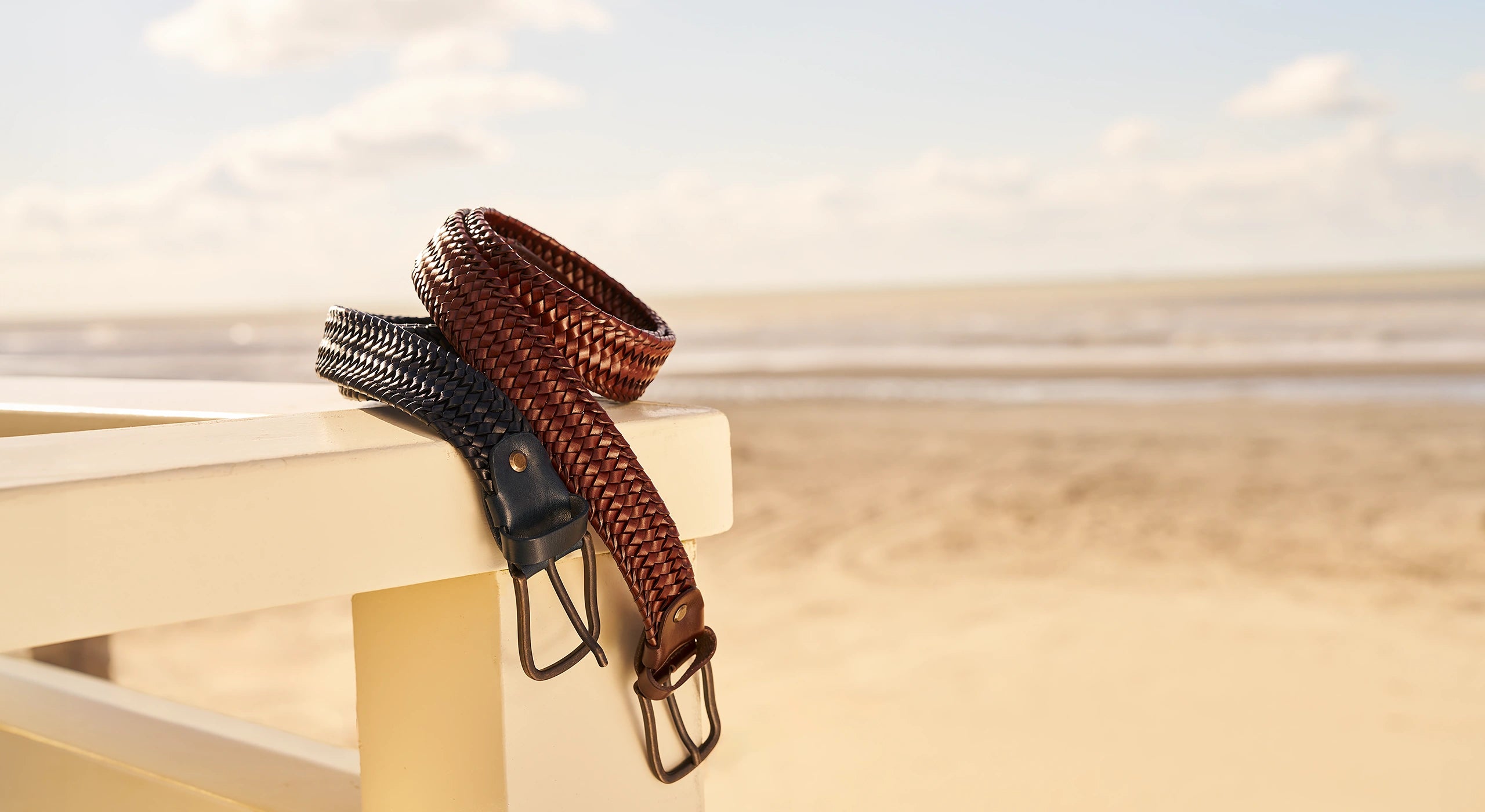 Lay the belt down flat, as shown. Measure from the start of the leather at the buckle to the third hole. This gives you your belt size.